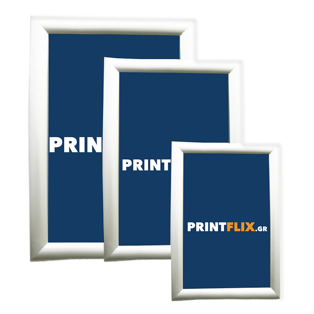 - Ιδανικό για χώρους πού η εναλλαγή των εκτυπώσεων είναι συχνή. Το πλαίσιο ανοίγει και κλείνει εύκολα (clip-clap).